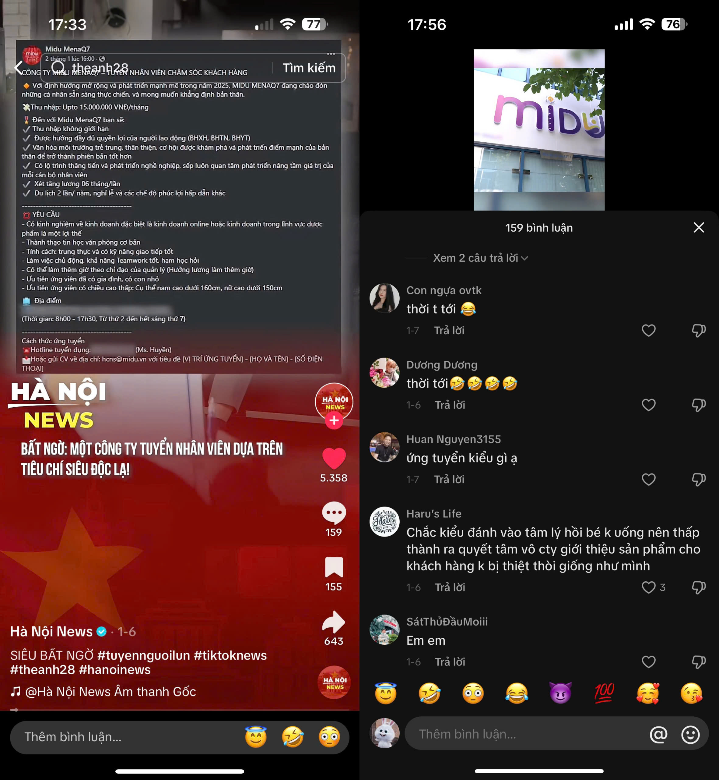 Kênh Tiktok Hà Nội News đã phản ánh về tin tuyển dụng này và có tới 300.000 lượt xem